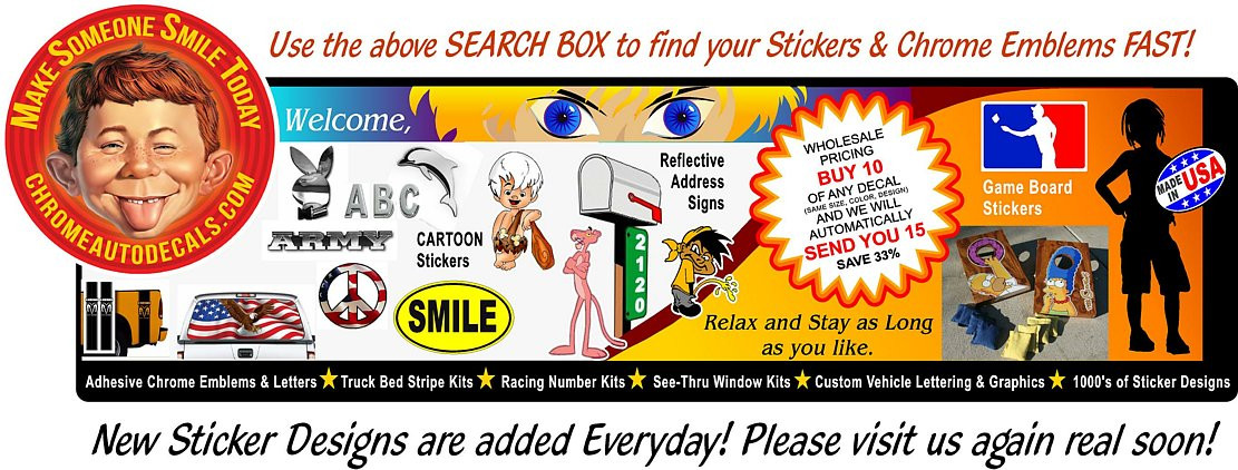 We also make custom stickers, and custom vinyl lettering kits for your walls, windows, cars, trucks, trailers, boats, signs and banners!