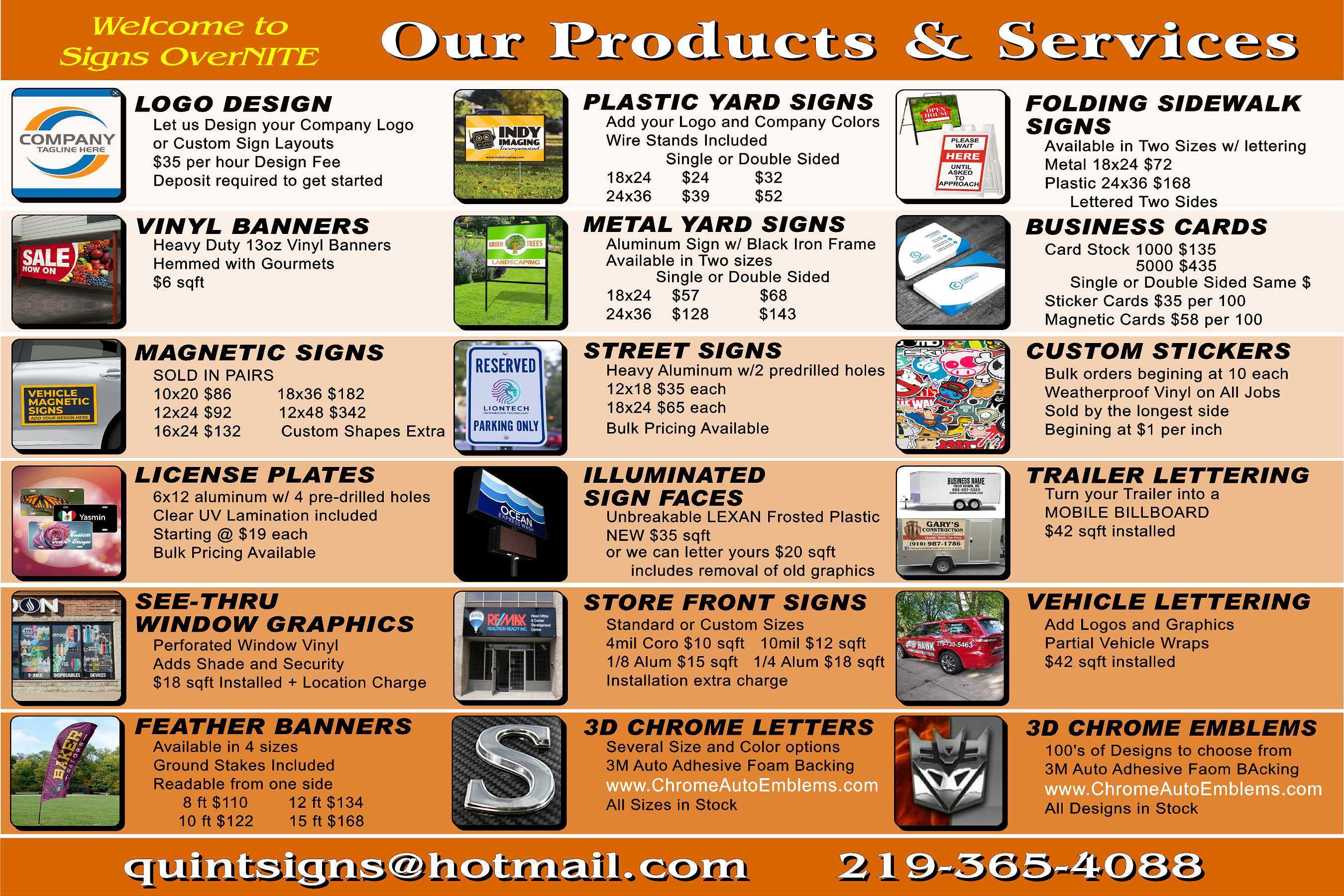 Email us at quintsigns@hotmail.com for a free quote!